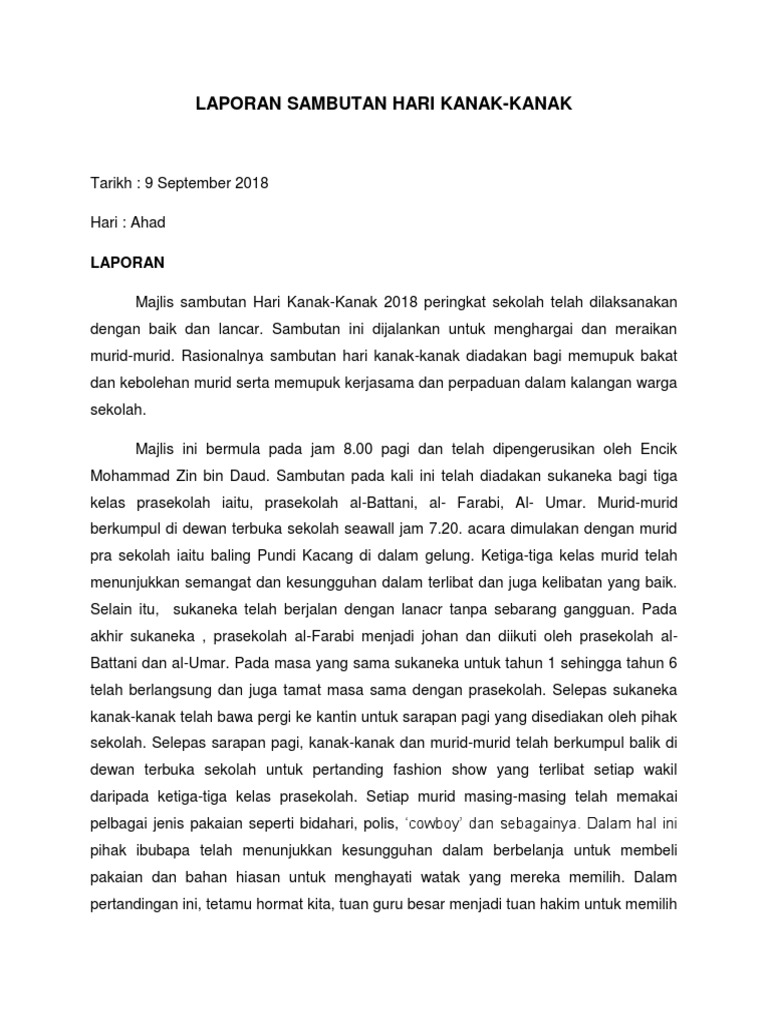 Contoh Karangan Laporan Sambutan Hari Kanak Kanak Info Wisata Terbaru